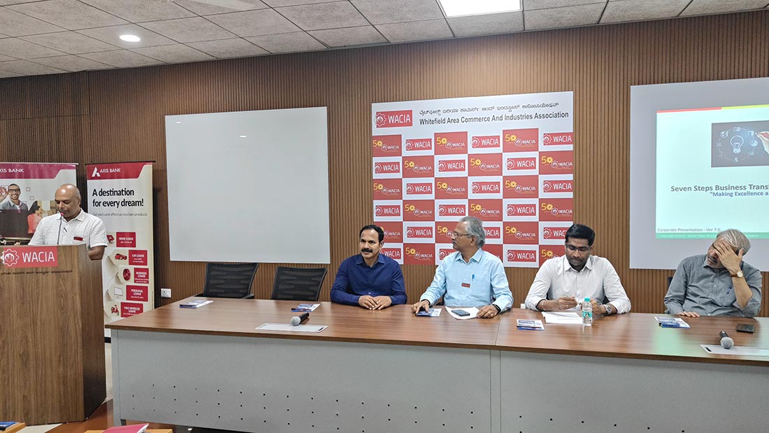 10th Members Business meet at WACIA Conference Hall on 18th December 2024. 47 members representing from Member Industries participated. The pre-meet networking session and post-meet interest group discussions added value to this event. M/s. Kingar Signs, General Industries and Safety Cop Solutions explained about their products. Mr. Ramesh M/s. Bravisa Temple Tree spoke about "Opportunity for Business Owners to Grow Their Wealth" M/s. Kotak Mahendra Bank explained about their product and many other benefits to MSME's. |